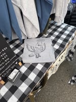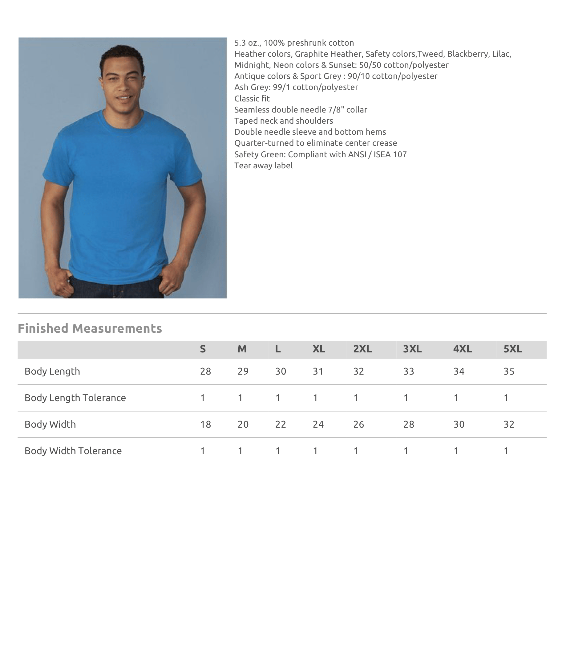 Unisex shirts are screen printed with black ink on a Gildan 5000 Heavy Cotton T-Shirt in color Sport Grey.